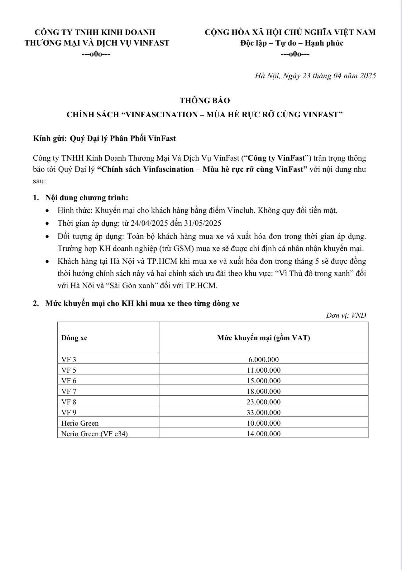 | VF7 | 75.000.000 80.000.000 |